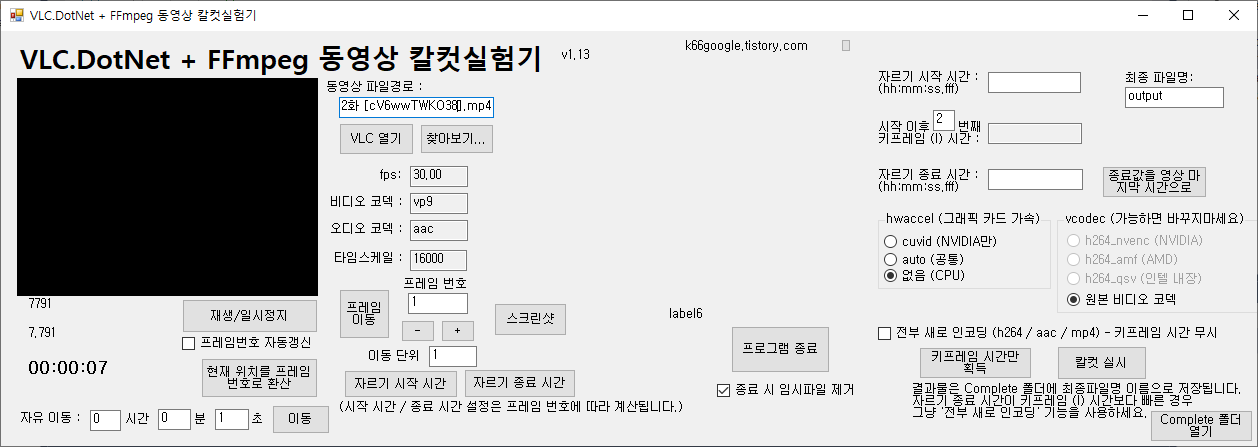 '칼컷실험기'는 VideoRedo와 Smart Cutter의 칼컷 기능을 따라해본 프로그램이다.