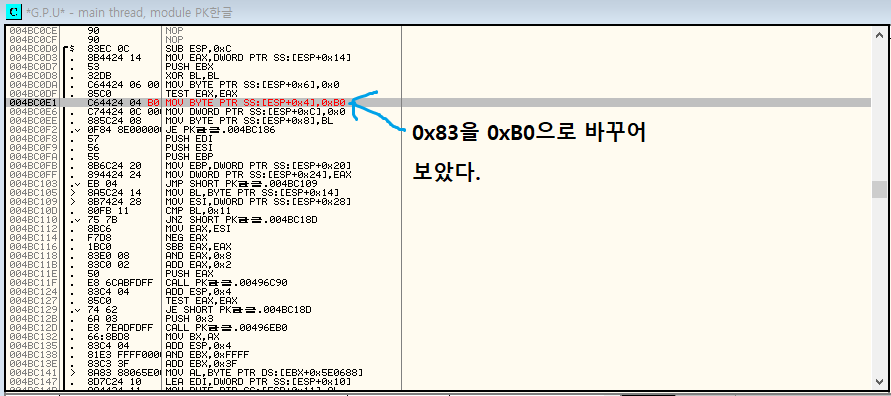 - 0x4BC0E1 : 0x83 → 0xB0 으로 변경.