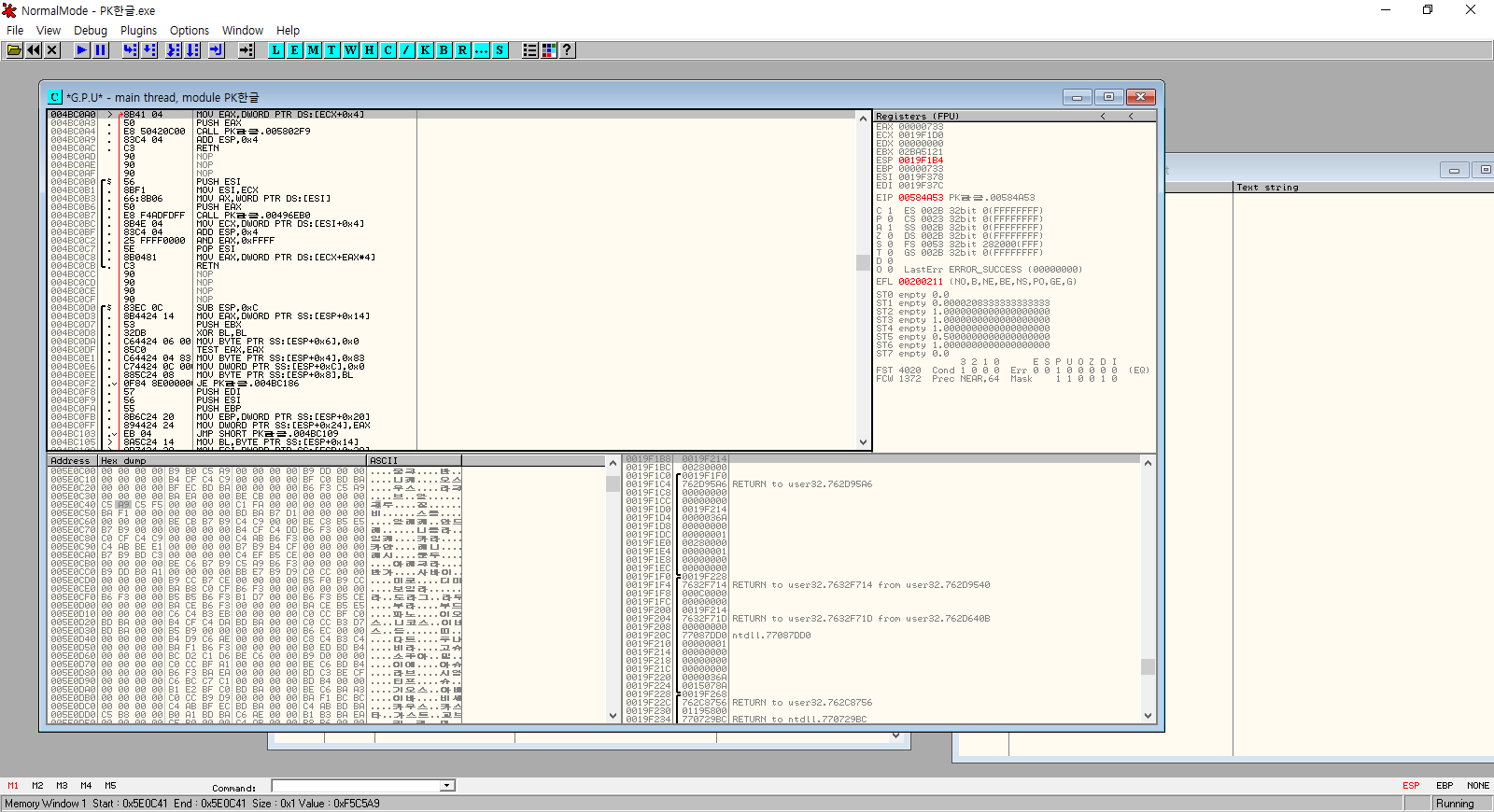 조금 아래로 내려가보니 004BC0E1에 이런 어셈블리 코드가 있었다.