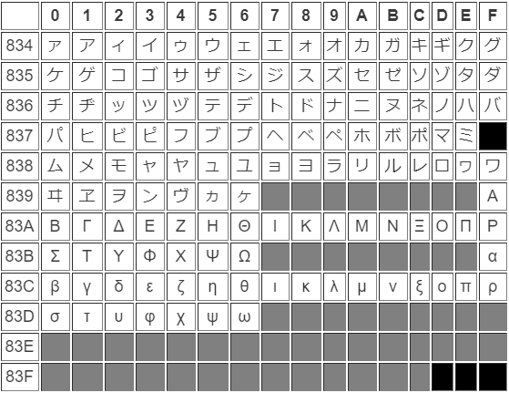 그러고 보니, Shift-JIS 코드의 83 xx대 영역은 전각 가타카나 영역이었다.