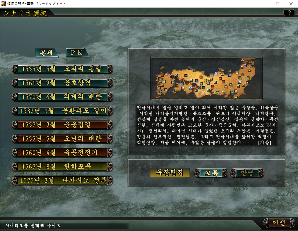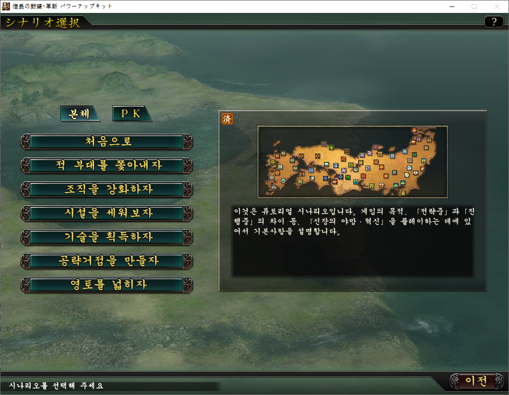 신장의 야망 혁신 PK 추가 한글패치입니다.