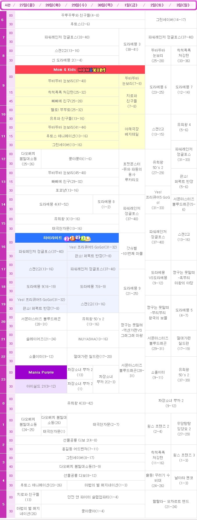 | 3 | 00 | 마법의 별 매지네이션(25~26) | 쿵야쿵야(1~8) | |||||