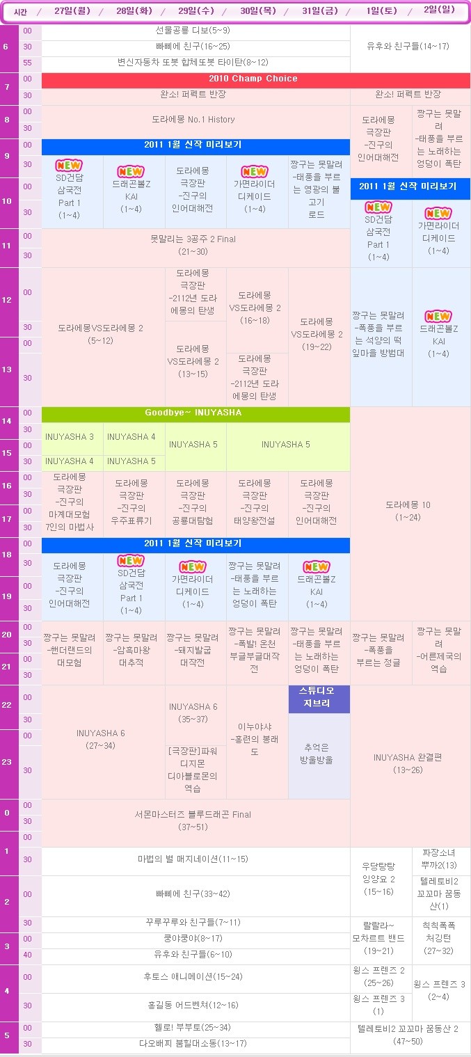 | 8 | 00 | 도라에몽 5(5~8) | 도라에몽 7(9~12) | 뚜바뚜바 눈보리 (45~48) |