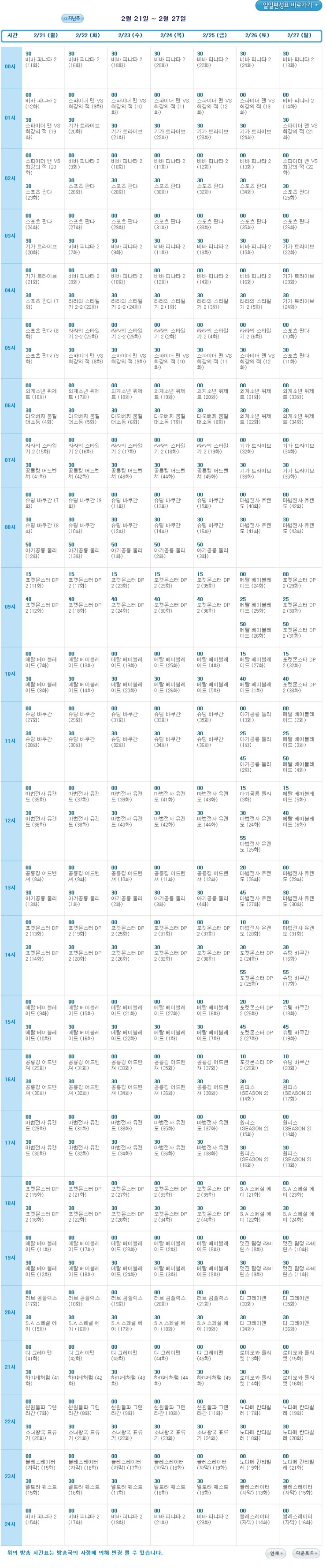일요일 익일 편성 추정 [2011.03.07 00:00 ~ 05:00]