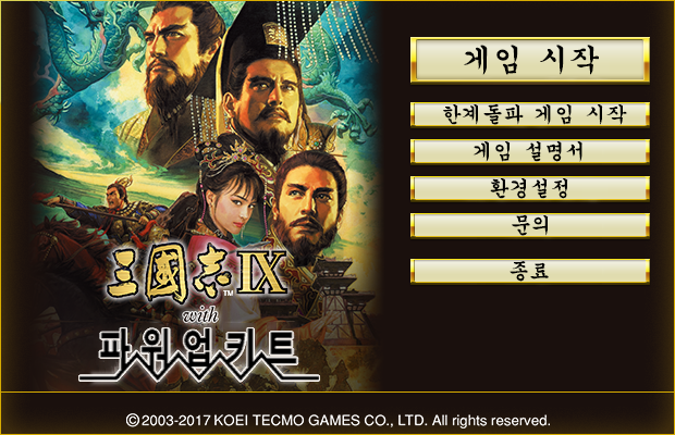이 패치는 스팀에 발매 중인 코에이 사의 '삼국지9 파워업키트' 한글 출력 패치 입니다.