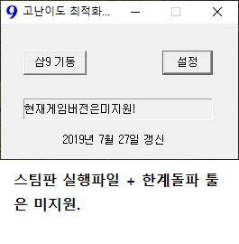 일단 [스팀판 실행파일 + 한계돌파 툴] 조합은 안 된다. 게임 버전을 미지원한다고 뜬다.