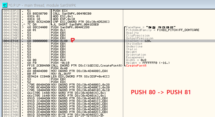 0041E910 : PUSH 0x80 -> PUSH 0x81