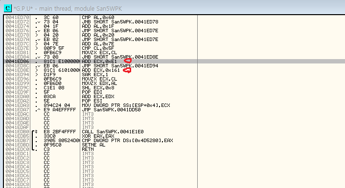 0041ED86 : ADD ECX, 0xE1 -> ADD ECX, 0x161