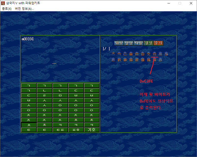 지난 1부에서, 뒷 바이트가 0xFD, 0xFE로 끝나는 글자들이 게임 내에서 ?로 출력되는 문제가 있다고 말한 적이 있었다.