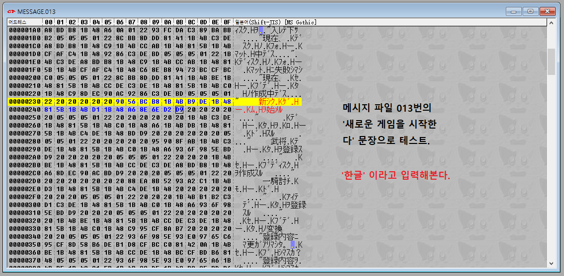 마침내 메시지 파일 내의 '한글'도 전각 히라가나 강제변환 없이 정상적으로 출력되었다.