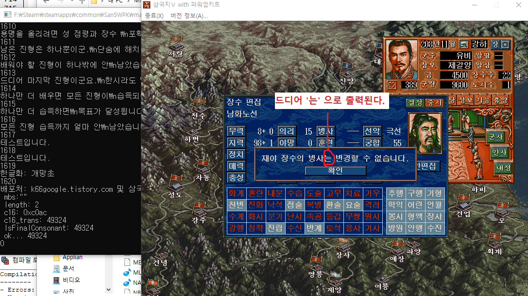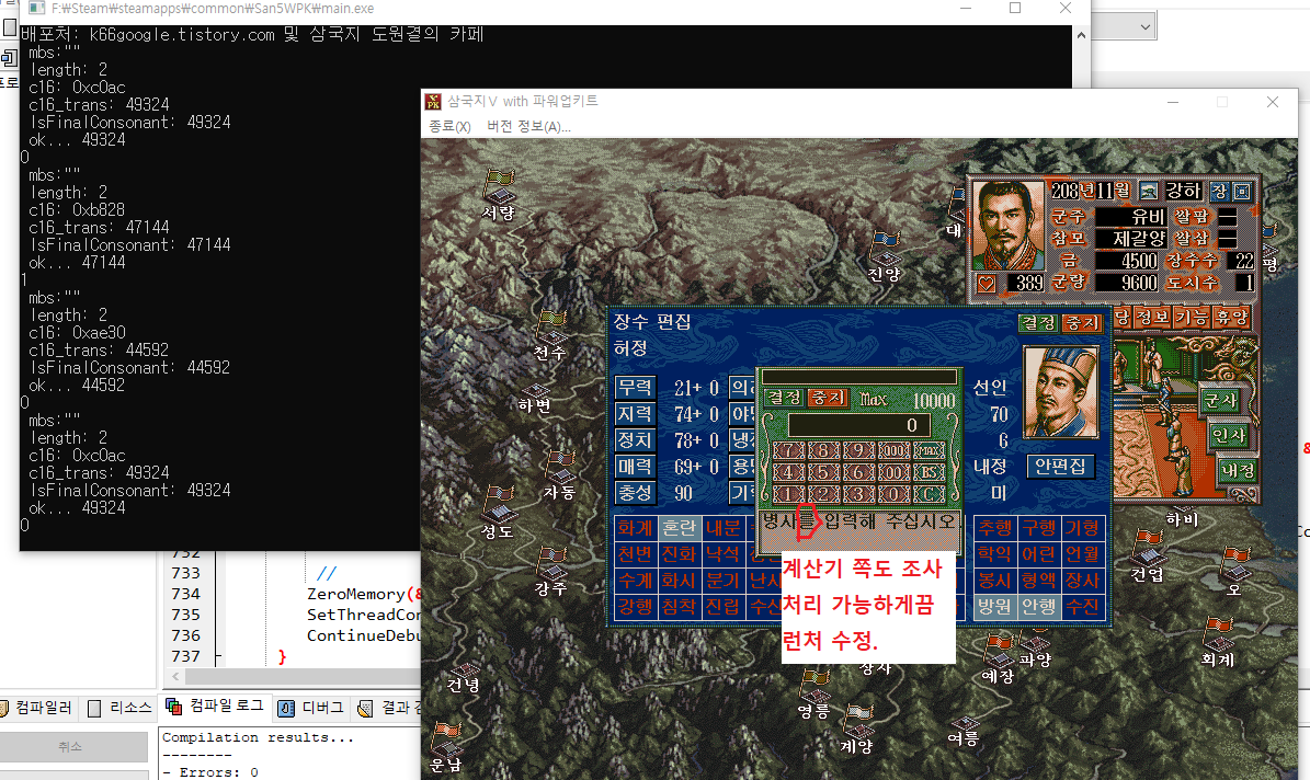 마침내 삼국지5PK 스팀 일본어판 한글 출력패치가 세상에 나올 수 있게 되었다.