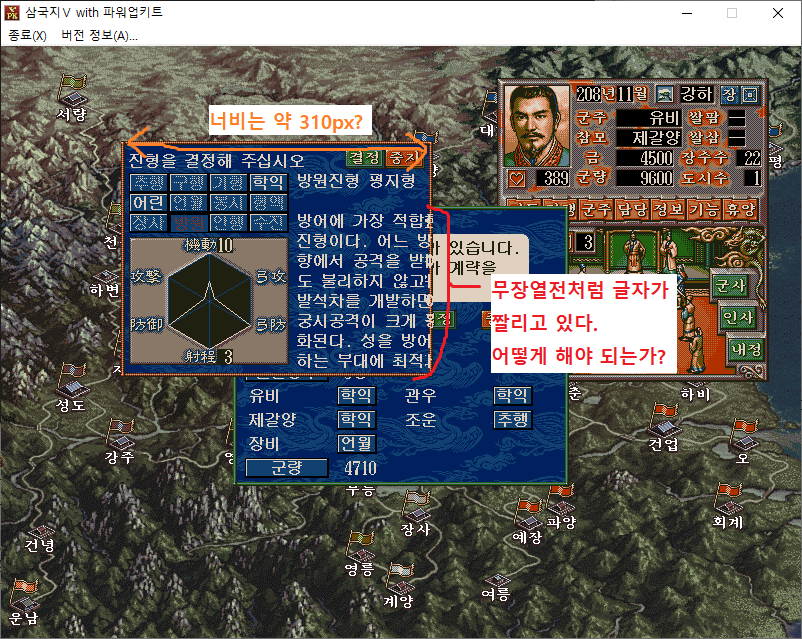 진형 설명 칸에 들어가봤더니 무장열전처럼 오른쪽에 설명이 짤리고 있다. 어떻게 해야 될까?