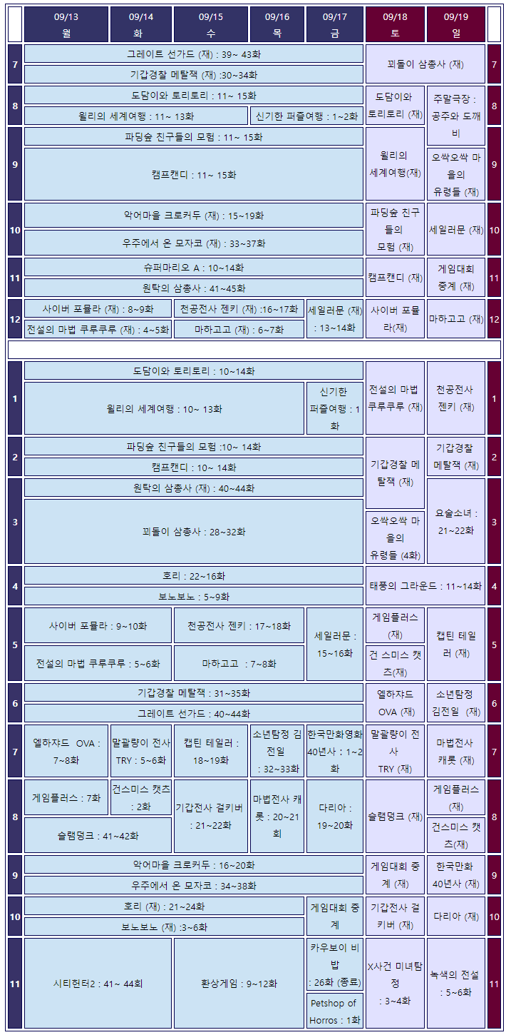 | 투니버스 과거 편성표 (2010년 1월 ~ 2025년 12월 백업) (0) | 2020.10.16 |