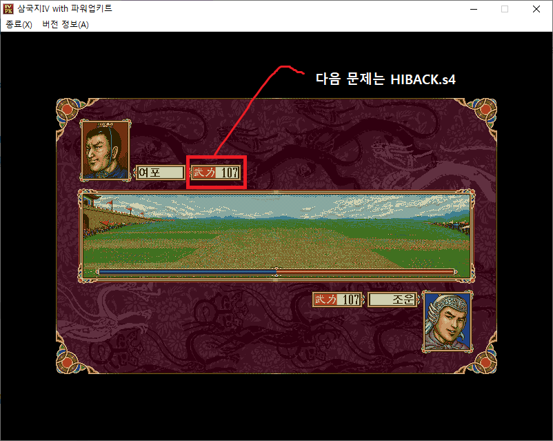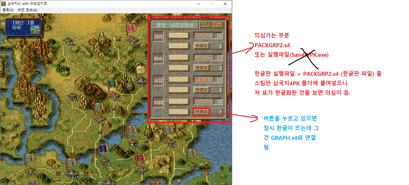 PACKGRP2.s4는 내정상황표, HIBACK.s4는 일기토 모드의 '무력' 텍스트 이미지와 연관이 있는 것으로 의심된다.