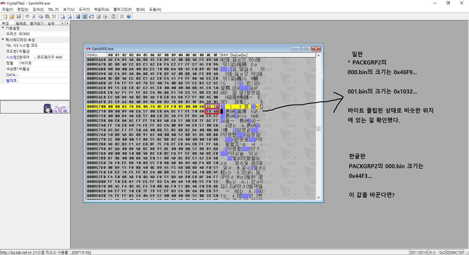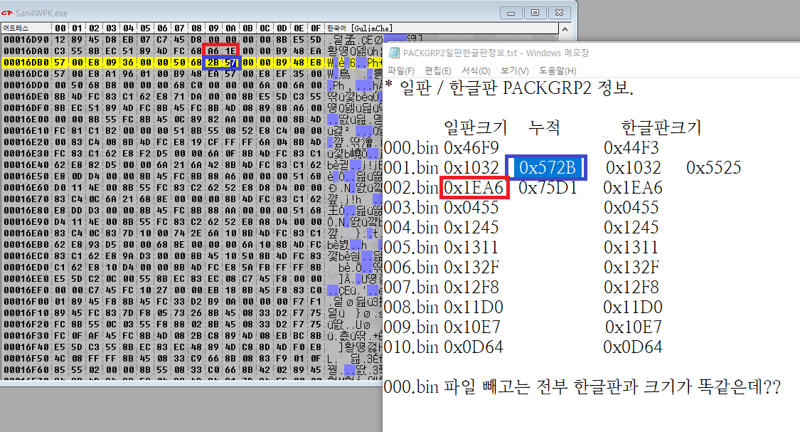 자, 그렇다면... 어떻게 해야 한글판 PACKGRP2.s4를 호환시킬 수 있단 말인가...