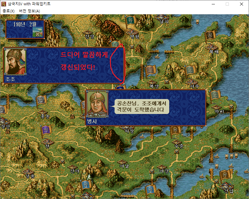 마침내 삼국지4PK의 한글 출력 패치를 배포할 수 있게 되었다.
