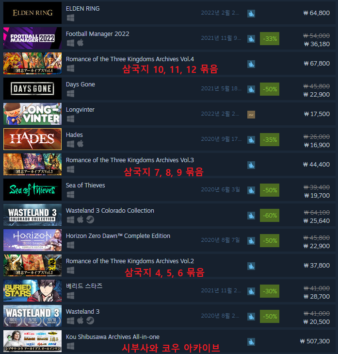 어쨌든 갑작스러운 판매 중단 사태로 인해 나는 부랴부랴 삼국지 1~3편까지 구매하게 되었다.