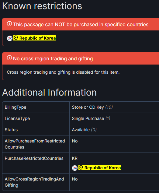 그건 2022년 4월 11일부로 게임 판매를 종료한다는 것이었다. VPN을 사용하여 다른 나라의 IP로 접속하면 해당 공지가 뜨지 않았기 때문에, 이것은 한국에서만 판매가 중단되는 이른바 '지역 제한' 예고였다.