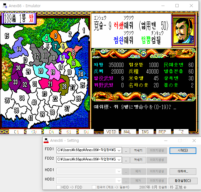바로 Anex86 에뮬레이터와 PC98 디스크를 조합해서 한글화를 하는 방식이다.