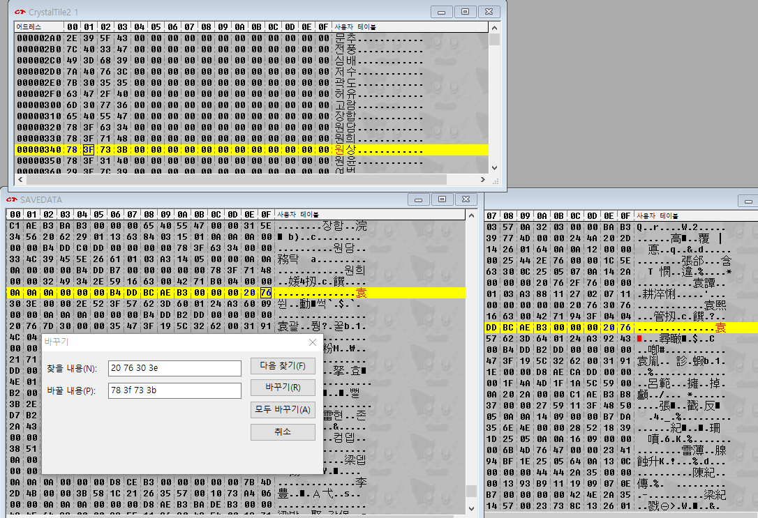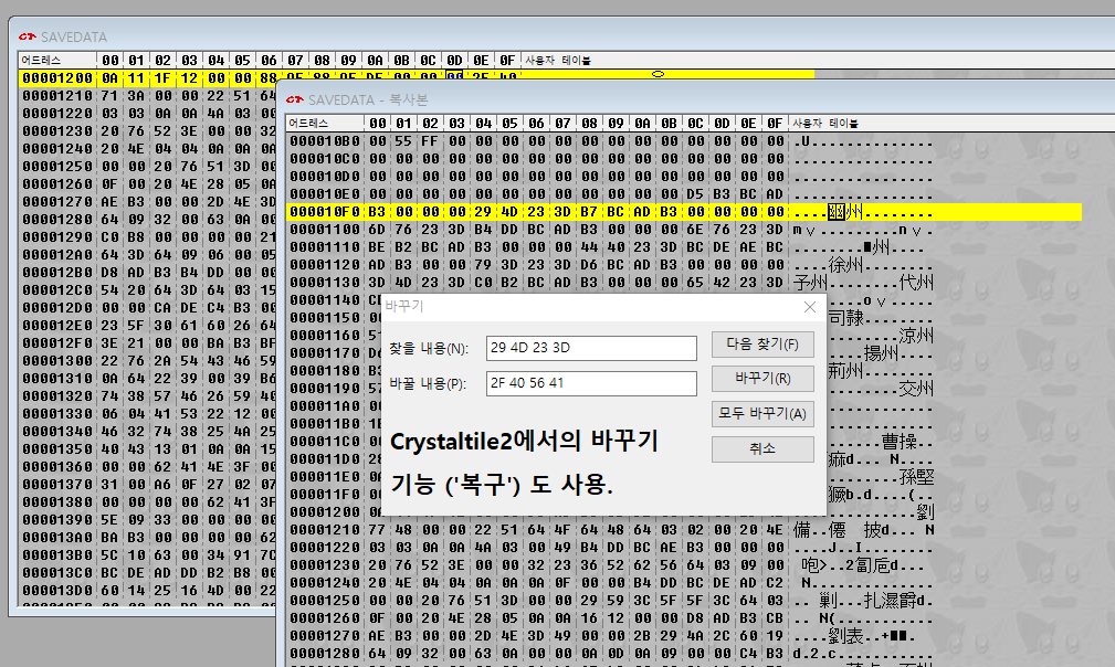 장수 이름 한글화때는 Crystaltile2의 '복구' 기능을 적극적으로 사용했다.