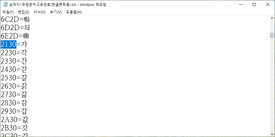 고유코드가 바뀌어서 위에서 분석한 코드표와 매칭되지 않았다. 겨우 삽질을 통해 올바른 한글로 바꾸었다.