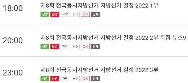 20:00 ~ 23:00 - 제8회 전국동시지방선거 결정 2022 2부 특집 뉴스9
