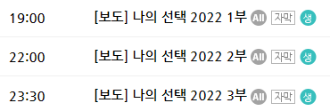 23:30 ~ 익일 02:00 : 나의 선택 2022 3부