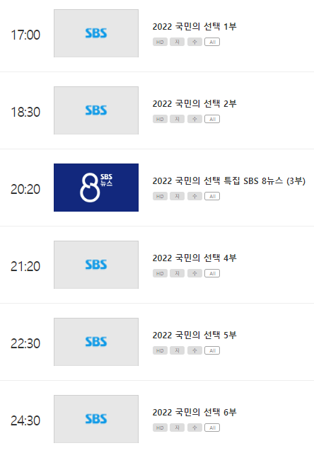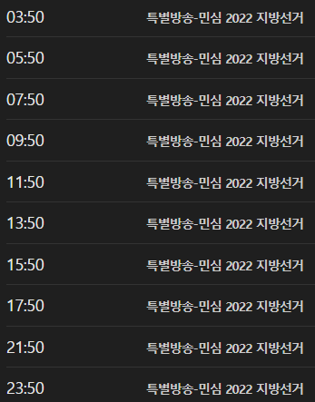 03:50 ~ 익일 10:50 - 특별방송-민심 2022 지방선거