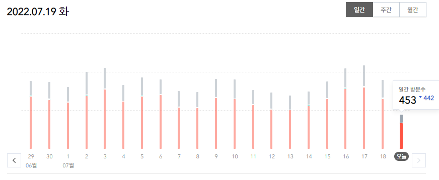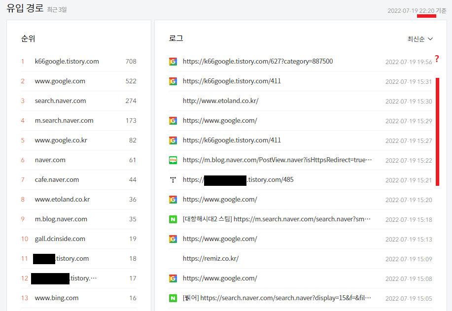 ...유입로그는 다음날(2022.07.20) 오전 8시 반부터 집계되기 시작하였다.