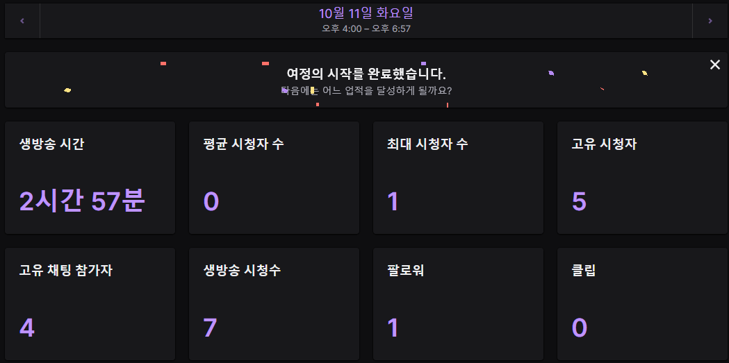 비록 휴방일이라도, 트위치 대시보드 플랫폼은 어느정도 익힐 필요가 있었다. 나는 통계 탭에 들어가봤다.