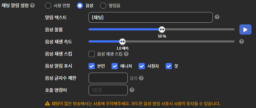 채팅은 아프리카도우미의 TTS가 읽어주는 식으로 변경한다.