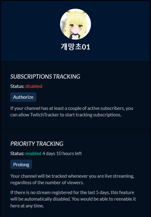 그래서 로그인을 해야 트래커 사이트가 정식으로 수집을 하나 싶어서 해당 사이트에 트위치 계정으로 로그인을 했다.