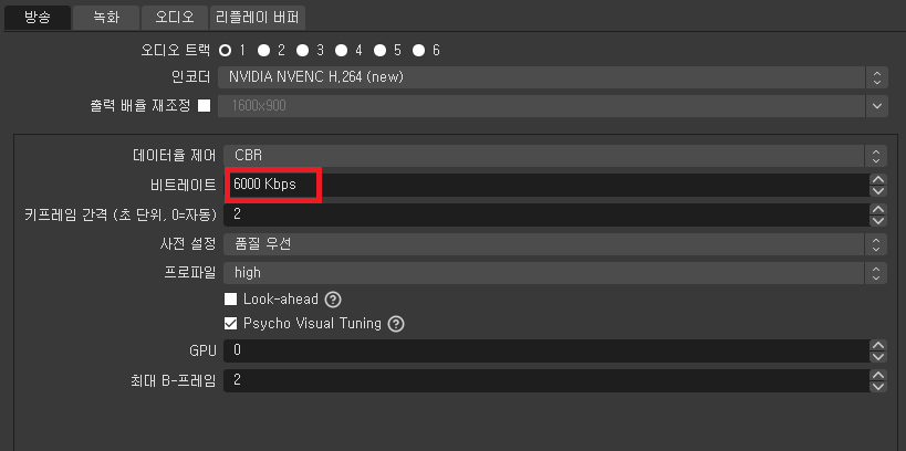 아무튼 10월 27일 방송부터는 1920x1080 30fps에 비트레이트는 6000K로 올리기로 한다. 6000K까지 올려야 캐릭터 이동 중에 화면 뭉개짐 현상이 덜 해 보이기 때문이다.