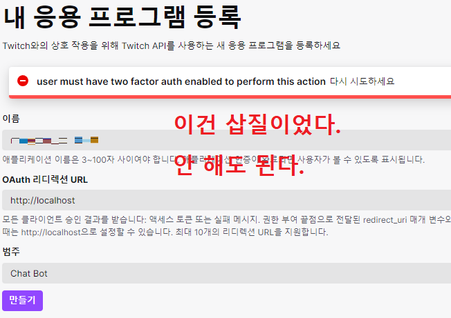 먼저 채팅봇으로 쓸 트위치 부계정을 만들기로 한다.
