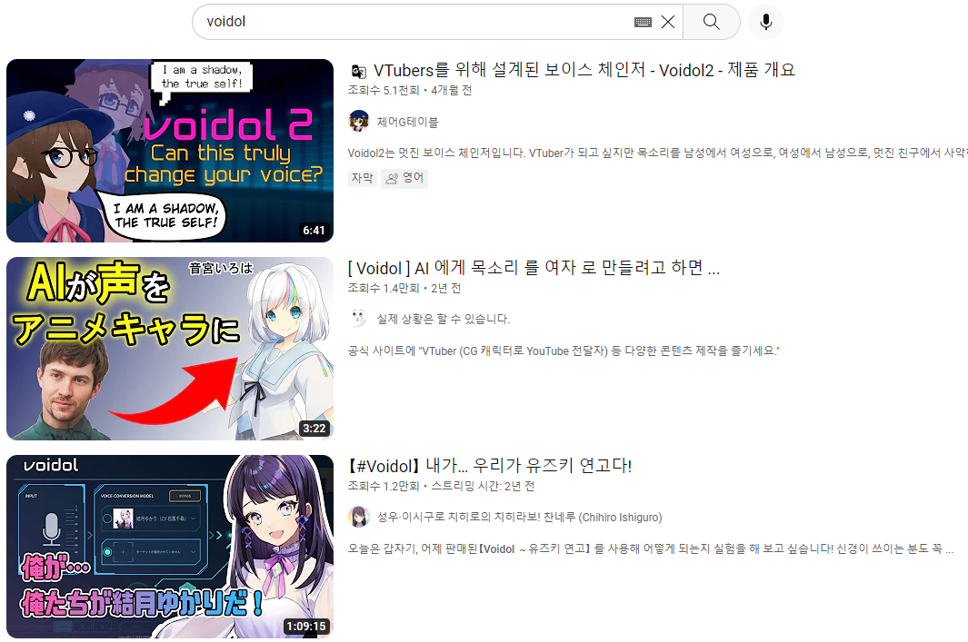 그래서 유튜브와 구글에 'バ美肉 voiceroid' 로 검색해보았더니 의외로 흥미로운 결과를 얻을 수 있었다.