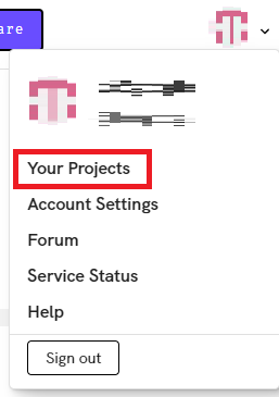 그러면 얼마 후에 버튼이 사라지는데, 오른쪽 상단의 프로필 사진을 클릭하고 Your Projects에 간다.