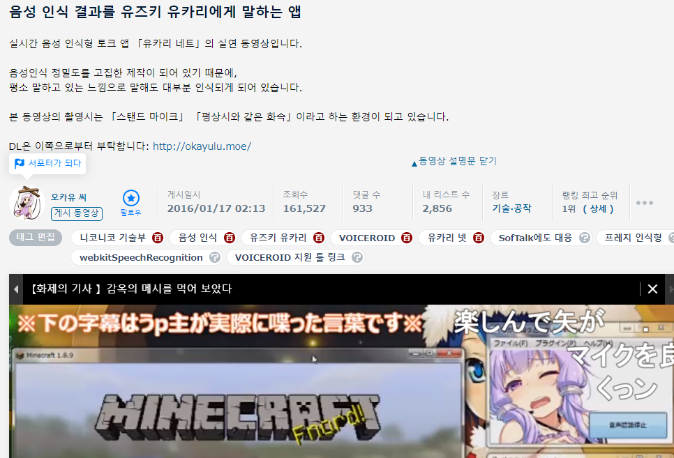 위에서 설명한 유튜버도 유카리넷으로 음성 인식을 하는 것 같다.