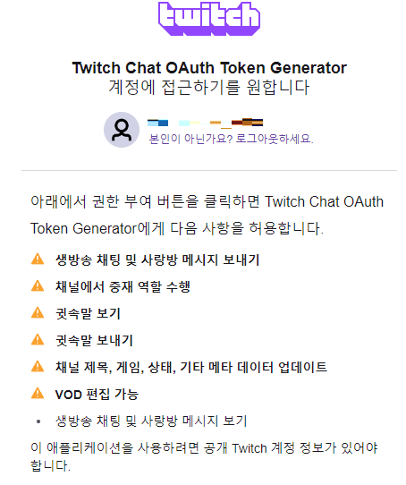 본래는 C#, VB.Net의 TwitchLib이라는 기능을 통해 제작하려고 했으나 무슨 넷프레임워크 버전을 트집잡길래 그냥 포기했다.
