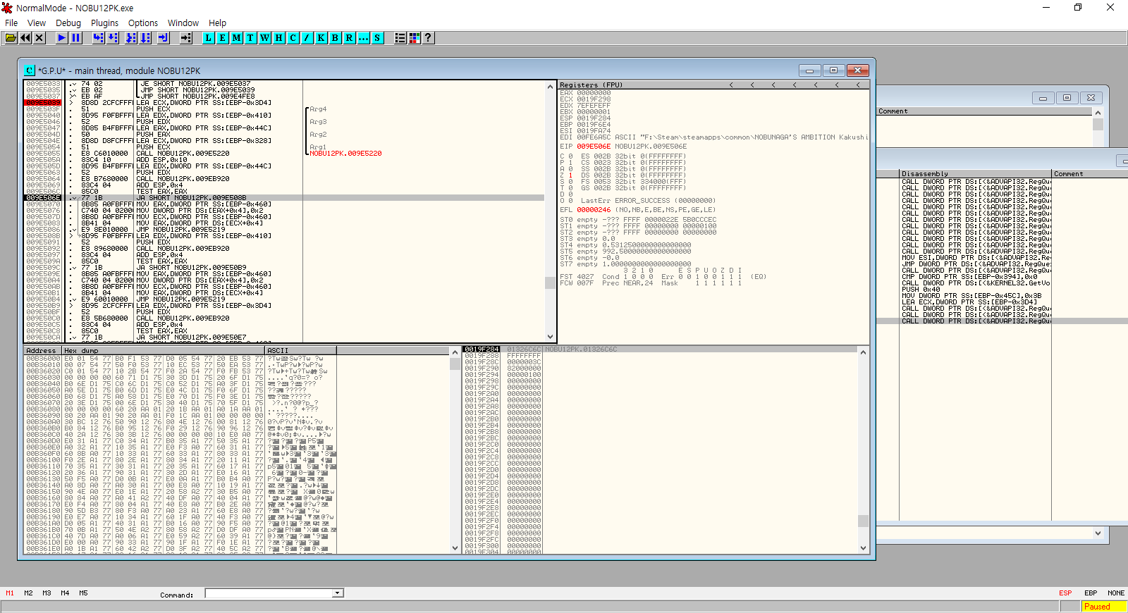 [추가시나리오 08번 클릭 → 009E4E1C에서 멈춤 → 시나리오 파일이 열려서 가문 선택 지도가 나올때까지 Ollydbg에서 계속 F8키 눌러서 넘김] 이런 식으로.