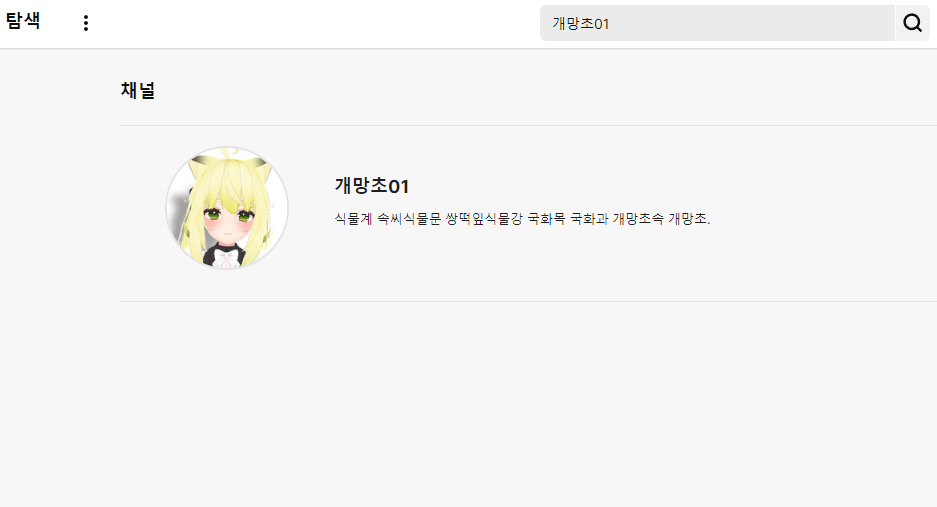 이제 내 닉네임을 검색하면 채널 하나만 덩그러니 나올 뿐이다. 허전하다.