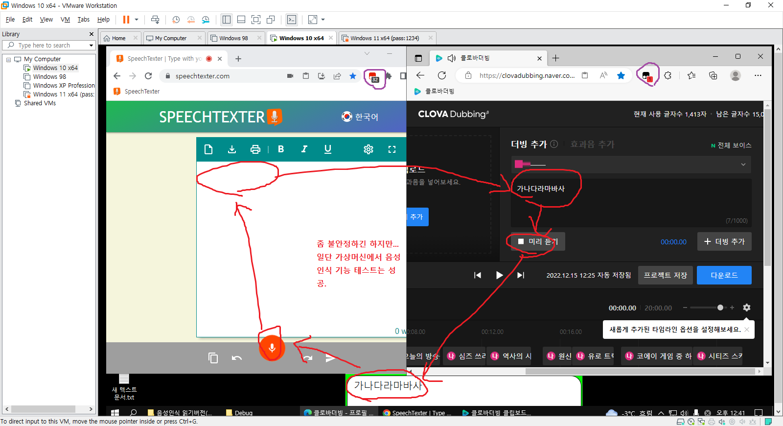 가상머신은 가상머신대로 프로그램이 돌아가고, 본 컴퓨터는 본 컴퓨터대로 프로그램이 돌아가니까 게임 화면과 음성인식 브라우저를 동시에 활성화시킬 수 있지 않을까? 시도해 볼 만하다.