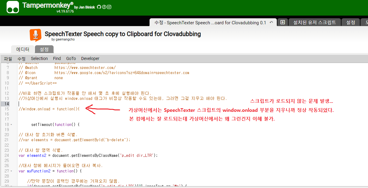 SpeechTexter의 인식된 문장을 클립보드로 복사하는 스크립트가 작동되지 않는 문제가 있었다.