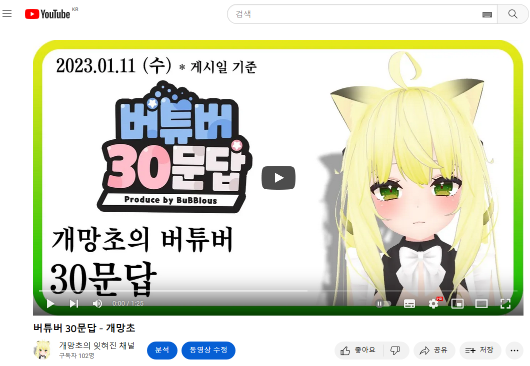 '버튜버 30문답' 이라는 영상을 편집해서 업로드하였다. 1문 1답 자기소개와 마찬가지로 한번 해보고 싶었기 때문이다.
