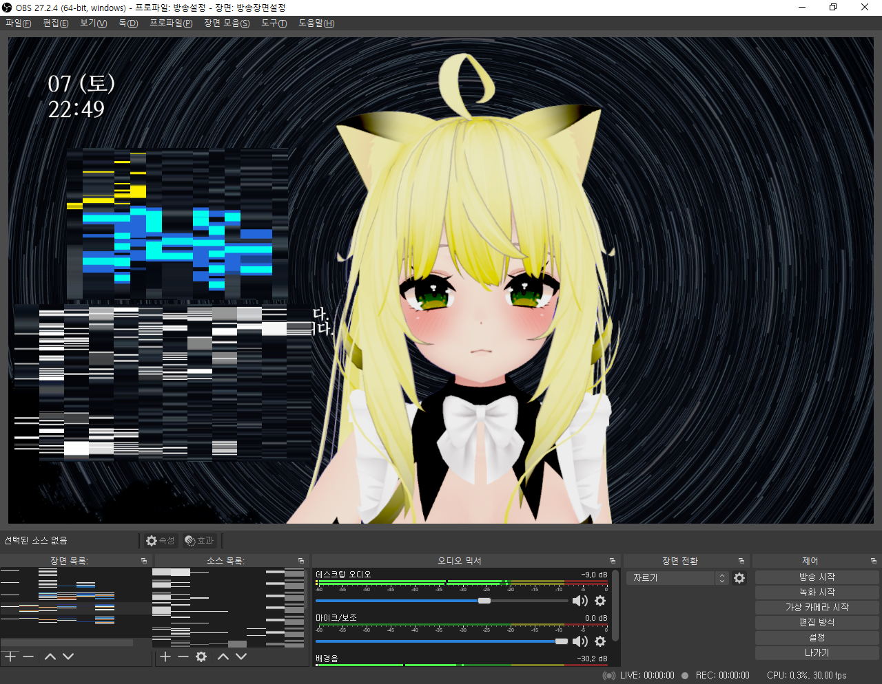 OBS 데스크탑 오디오 출력을 -9.0db에서 -1.0db로 변경하고, 해당 오디오 옵션은 해제하였다.