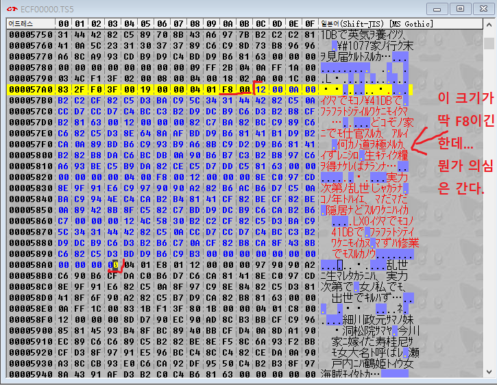 그럼 이 방식을 가지고 ECF00000.TS5 파일을 수정해보자.