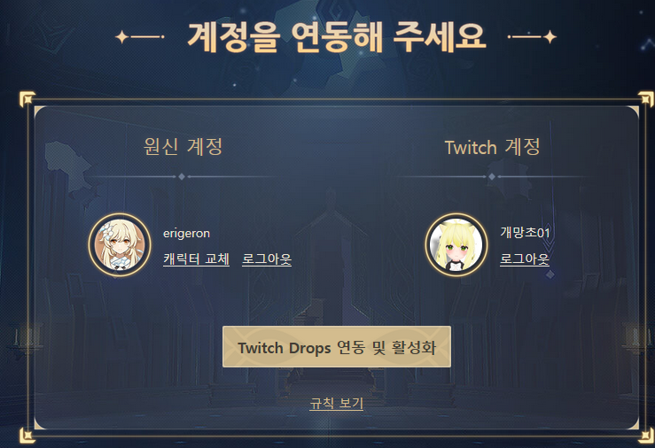 원신도 드롭스가 되길래 계정을 연동시키고, 활성화를 하였다.