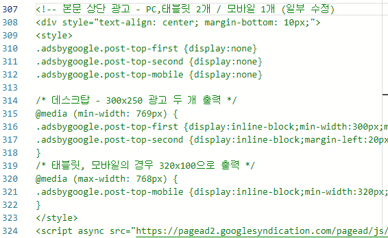 보통 내 블로그처럼 게임이나 IT쪽을 주로 다루는 블로그는, 대부분의 방문자들이 애드블록을 깔고 들어오기 때문에 광고 수익도 그리 크지 않다. 그러므로 이쁘게 설정했던 상단 광고는... 주석 처리를 통해 잠시 끄기로 한다. 안 그러면 게시물 진입 때 본문이 아닌 커다란 광고판들이 맞이해줄 가능성이 높고, 그렇게 되면 구글이 트집을 잡을 수도 있을테니까.