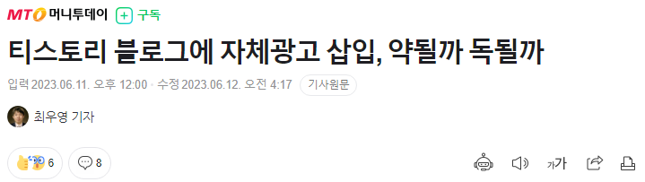 자기 회사 광고 플랫폼인 애드핏도 있는데, 왜 카카오는 유저들의 블로그에 기를 쓰고, 블로그 미관까지 훼손해가면서 자기들의 애드센스 광고판을 부착해대고 있는지 도저히 이해가 가지 않는다.