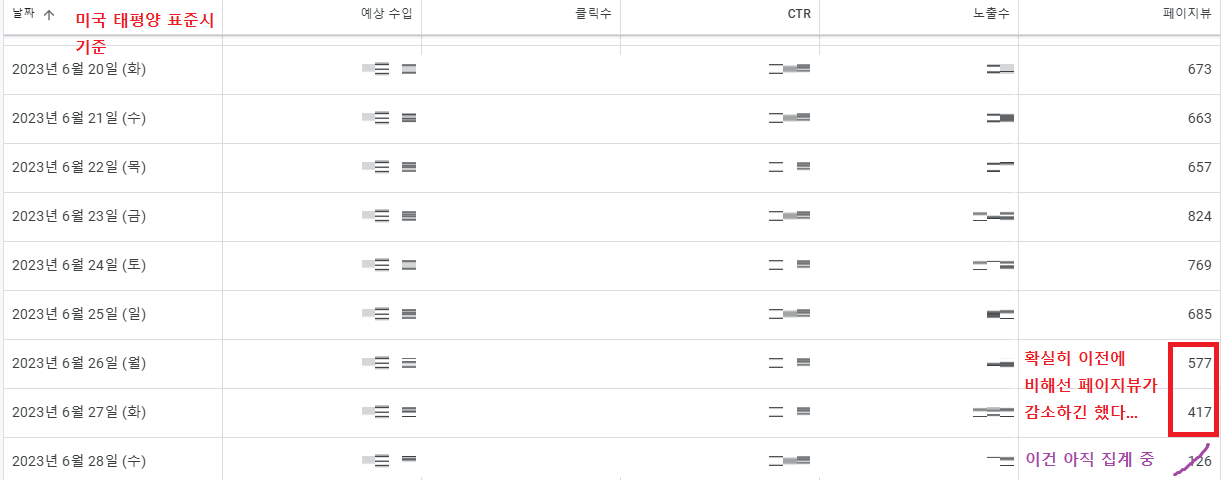 이번 사태가 벌어진 후, 유저들의 공통된 의견 중 하나는 애드센스 보고서에서 페이지뷰가 감소했다라는 부분이다.