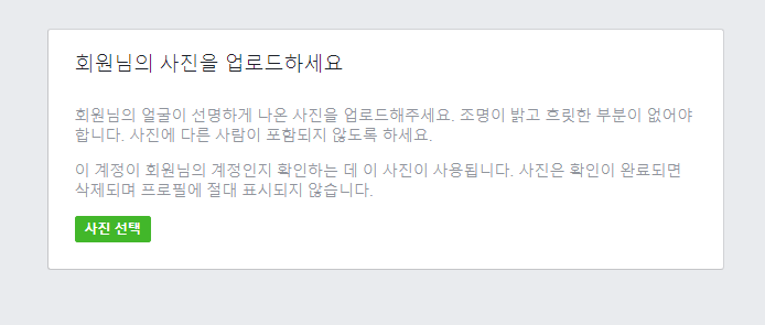 그래서 같은 가명으로 재가입을 하니 얼마 안 가서 또 계정이 잠겼다. 그리고는 내 얼굴 사진을 업로드하라는 말도 안되는 요구를 받았다. 엿같았지만 찍어서 보냈다.
